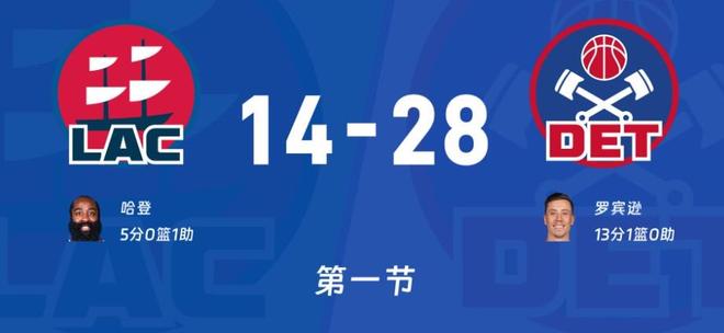 開場祖巴茨幫助快船跳得第一攻,活塞防守強度給得很大兩次將球切出界,小卡后場持球推進一條龍跳投造成湯普森犯規,兩罰一中得到開場第一分。里德中距離首次出手把握住,哈登持球過半場艾維打到登哥臉犯規了,活塞給得強度真大。鄧羅連中2次三分,快船這段時間失誤很多客場3-8落后開局,格林三分不中祖巴茨內線夢游既不防守也不卡人,讓艾維輕松前場板上進,泰倫盧喊出暫停,開場這段時間快船明顯受到背靠背體能影響。重新比賽祖巴茨、哈登接連失誤,鄧羅過掉小卡殺入內線上籃、格林造犯規兩罰全中連續得分14-3場面要失控了,哈登突破吃帽鄧羅反擊拉桿繼續上進,祖巴茨內線吃餅終于得分了,還是鄧羅底角三分開火,里德兩罰一中20-5。首節后半段大洛上場,快船攻防明顯好轉打了一波7比0將比分縮小到8分,但最后一分鐘又連續犯錯首節14-28落后!